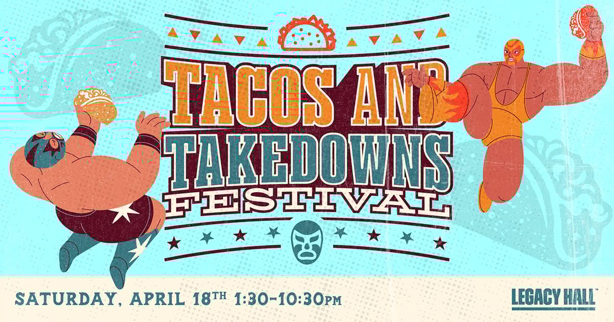 The Tacos & Takedowns Festival takes over Legacy Hall on April 18 with a full day of tacos, live wrestling, music, tequila tastings, and plenty of photo ops. It’s a high-energy mix of food and entertainment, all in one spot.*