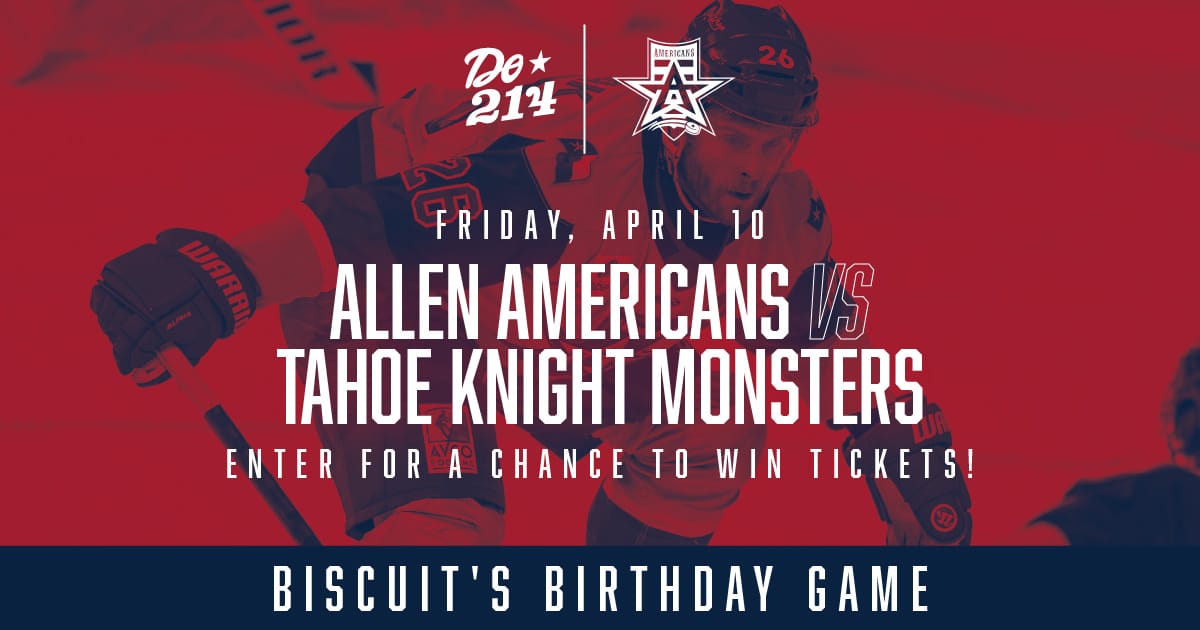 The Allen Americans face the Tahoe Knight Monsters on Friday, April 10 at the Credit Union of Texas Event Center for Biscuit’s Birthday Bash. Expect fast-paced hockey, themed entertainment, and plenty happening beyond the ice. Enter for a chance to win a four-pack of tickets and celebrate with the crowd!*